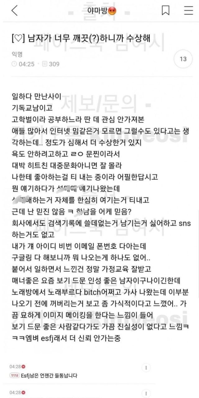 남친이 너무 깨끗해서 수상한 여