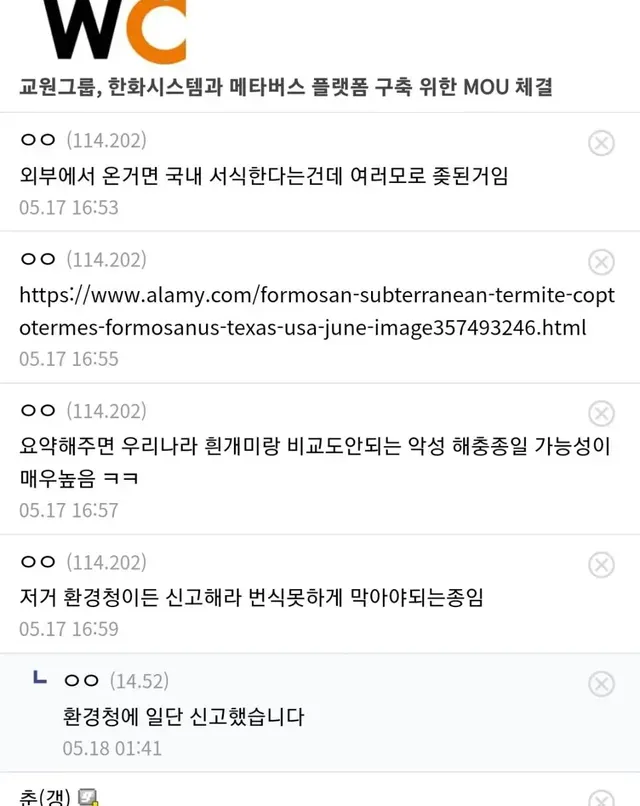 흰 개미는 목재를 갉아먹어 목조주택을 무너트릴 수 있다고 합니다.